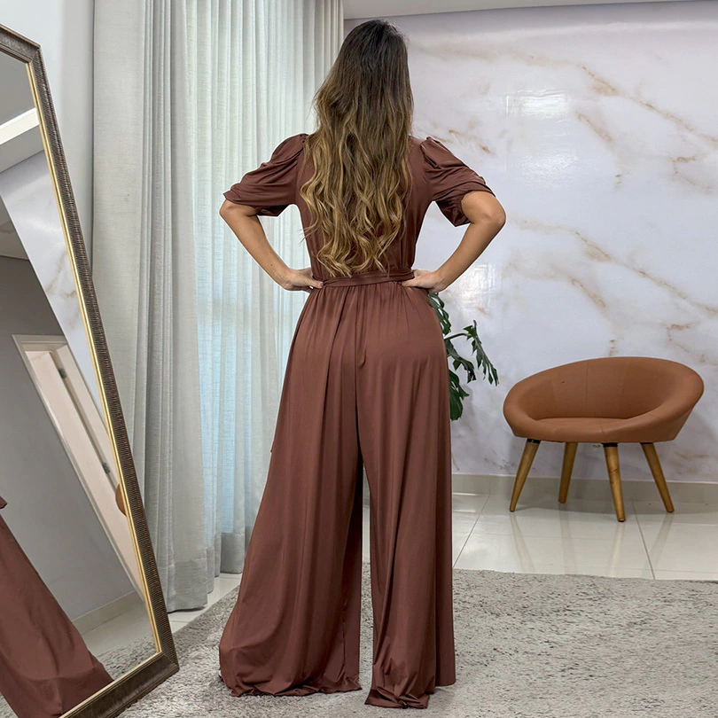 Nosso macacaão July confeccioando no tecido fluity. Tecido é uma delícia no corpo, não amarrota e tem ótima elasticidade.